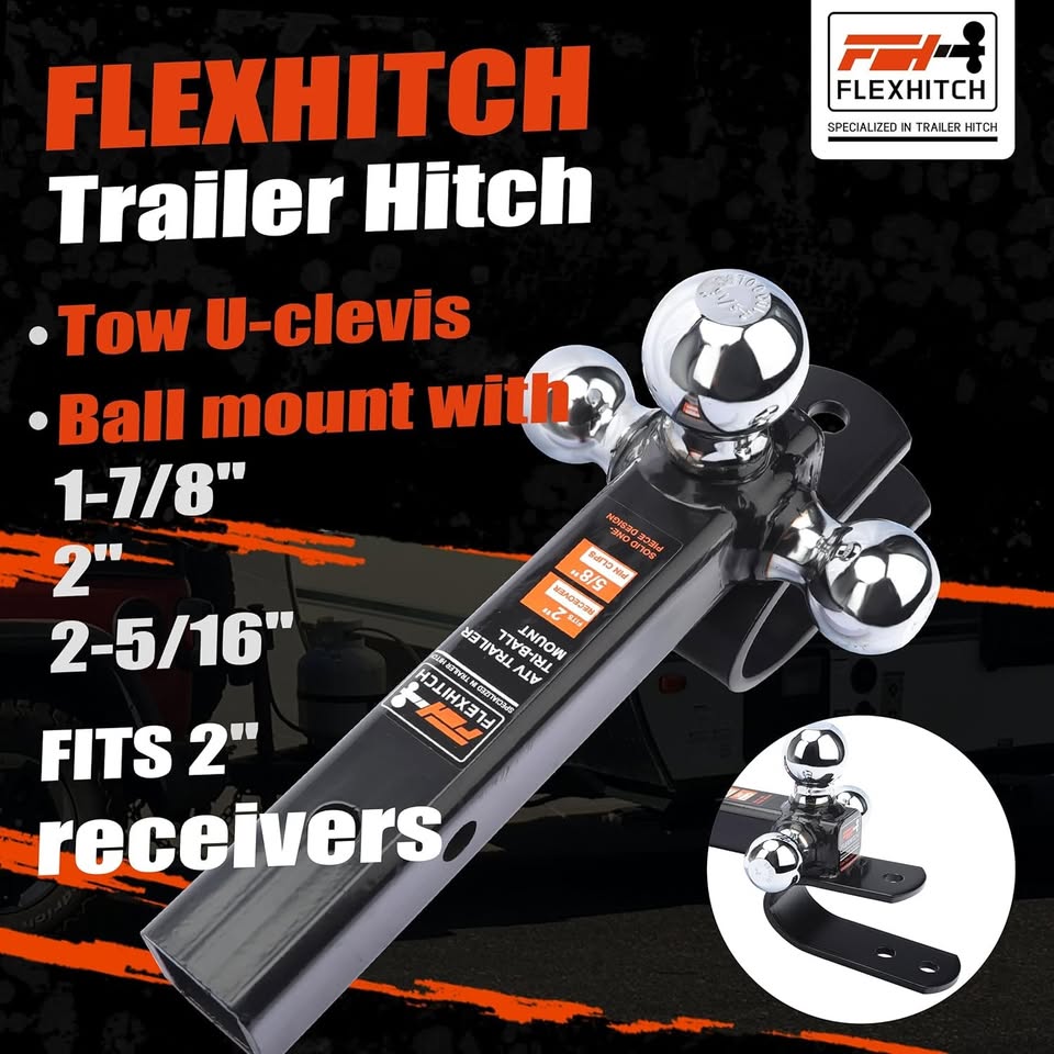 Conception polyvalente 3-en-1 : Trois boules d’attelage (1-7/8″, 2″, 2-5/16″) pour une compatibilité maximale avec les coupleurs de remorque Construction robuste en acier : Conçu pour les usages intensifs (boules 5 000–7 500 lb, manille 6 000 lb) pour les tâches de remorquage exigeantes Finition anticorrosion : Revêtement robuste résistant à la boue, à l’humidité et aux environnements salins Manille en U intégrée : Douille en forme de U supportant jusqu’à 6 000 lb, idéale pour la récupération ou l’arrimage de charges lourdes Installation facile : S’adapte à tout attelage standard 2″; il suffit de pivoter le support pour choisir la boule adéquate (aucun outil requis) PG 611